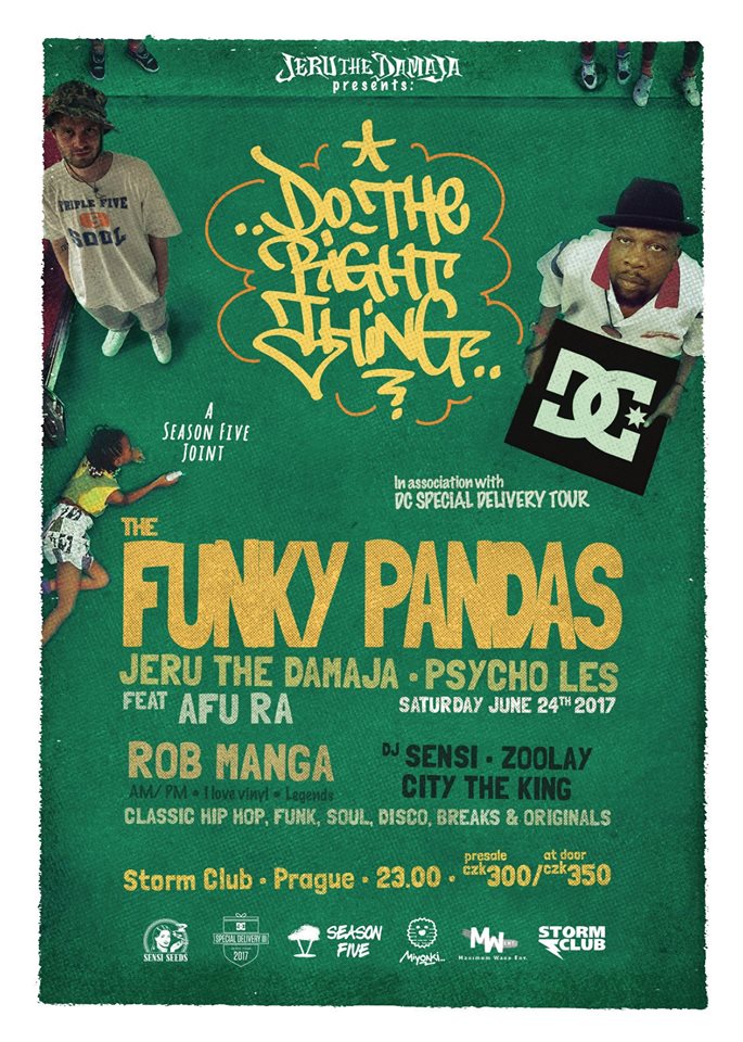 Letos DC Shoes spolupracuje na tour s legendárním Jeru The Damaja na sérii koncertů « DO THE RIGHT THING » kde vystoupí FUNKY PANDAS (Jeru & Psycho Les).