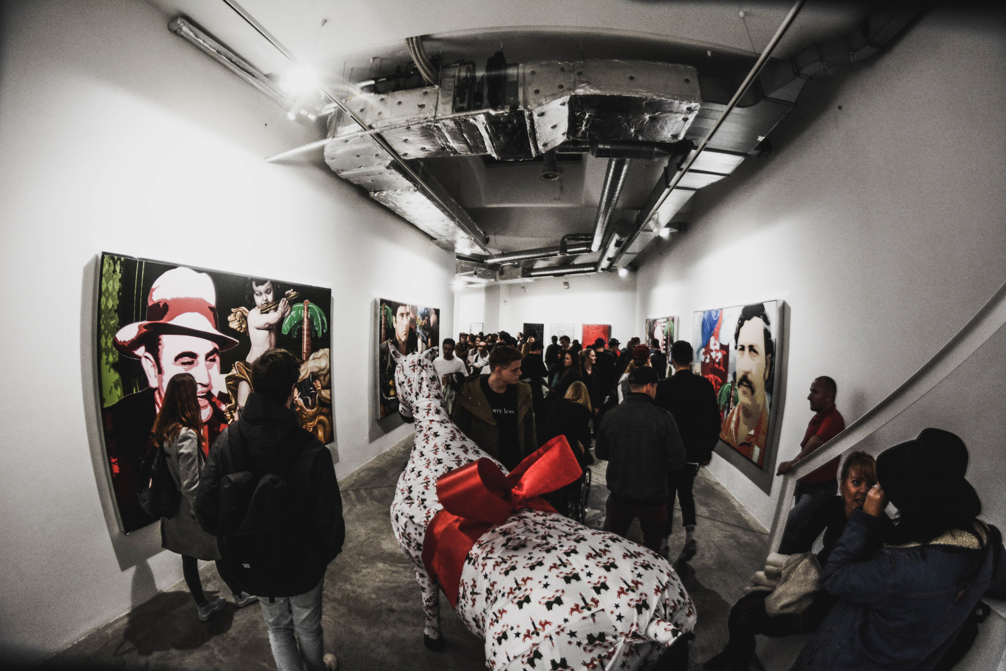 Výstava, kterou s motivy tzv. „bad guys“, jako jsou Pablo Escobar anebo Tony Montana, kterého zahrál Al Pacino, protíná velká světelná kostka se svými náboženskými symboly a názvem Mandala, je opět dechberoucí.