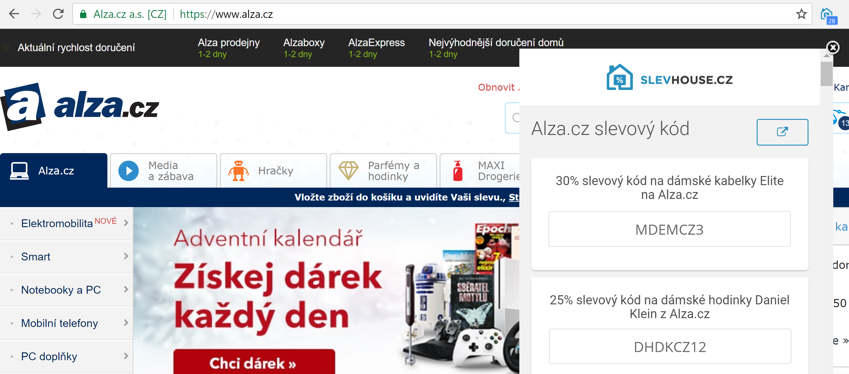Mimo jiné tento portál nabízí také šikovný doplněk pro prohlížeč Google Chrome, díky kterému získáte pohodlný způsob pro získání aktuálních slevových kódů a už nikdy nezapomenete ušetřit během jakéhokoli nakupování na internetu. Stačí jedno kliknutí a okamžitě uvidíte všechny dostupné slevové kódy.