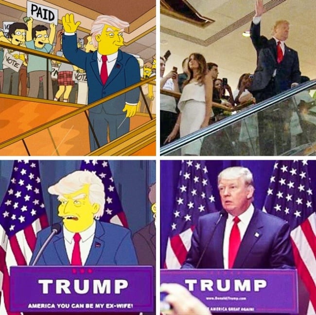 Tvůrci oblíbené americké animované rodiny Simpsonových vytvořili v roce 2000 epizodu, ve které si dělají legraci, že se Donald Trump stane prezidentem Spojených Států. Kdo tehdy mohl tušit, že se to doopravdy stane?